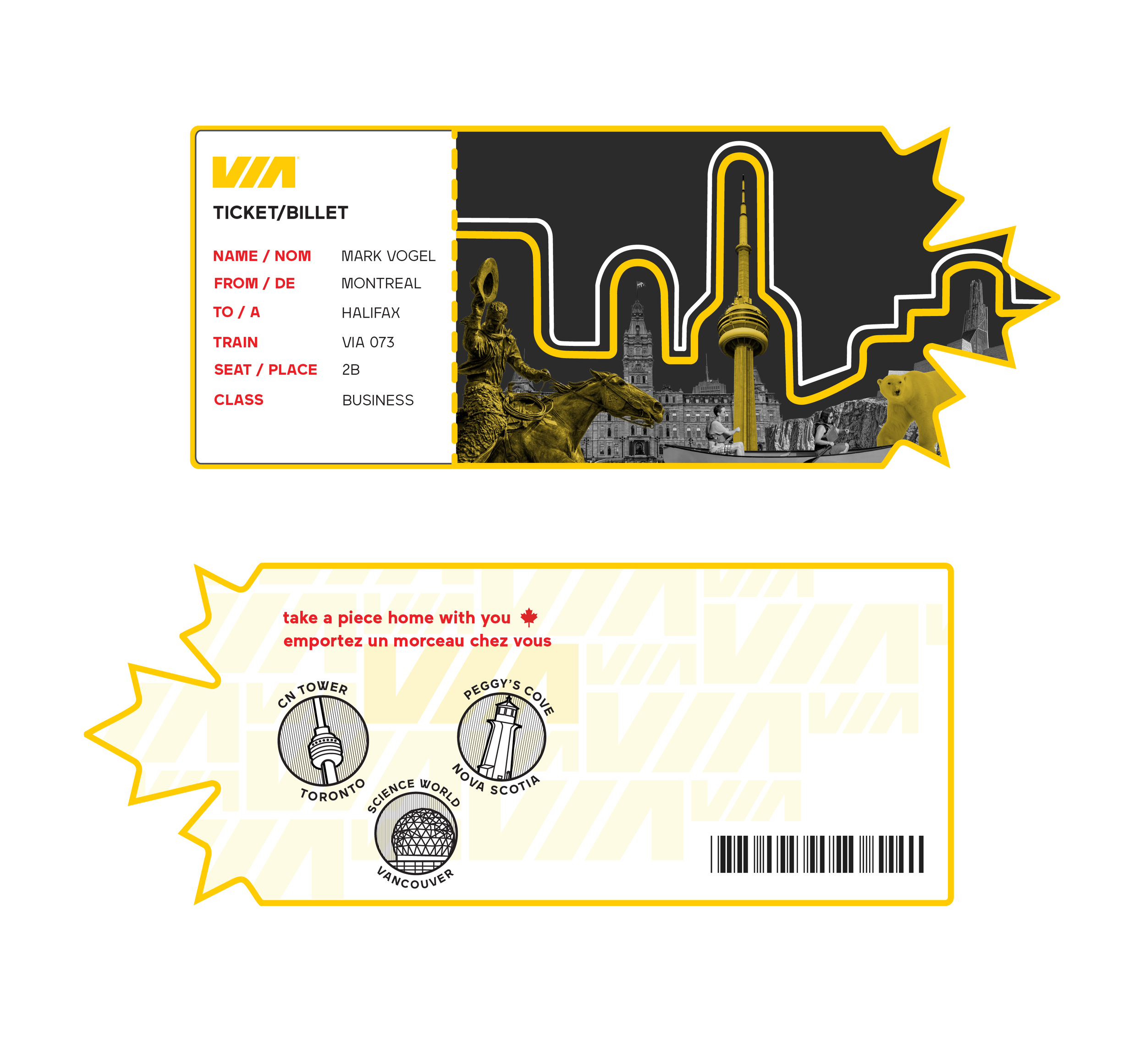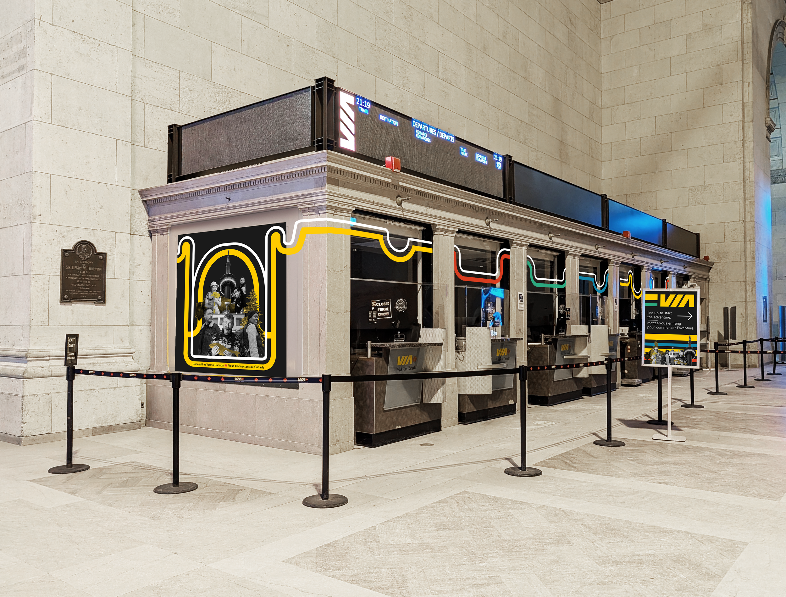 As part of the RGD Project-Based Mentorship Program, our team was given a brief to redesign the VIA Rail travel experience to encourage new riders, create a more modern and welcoming journey, and highlight the benefits of train travel. After researching VIA and other rail systems, we developed the central theme Forging Connections, focusing on how each moment of the journey—big or small—contributes to a more meaningful travel experience. We approached this through positioning the station as part of the destination, elevating micro experiences, and strengthening VIA’s brand across all touchpoints, with deliverables ranging from station wayfinding and environmental graphics to in-train visuals, packaging, and merchandise.